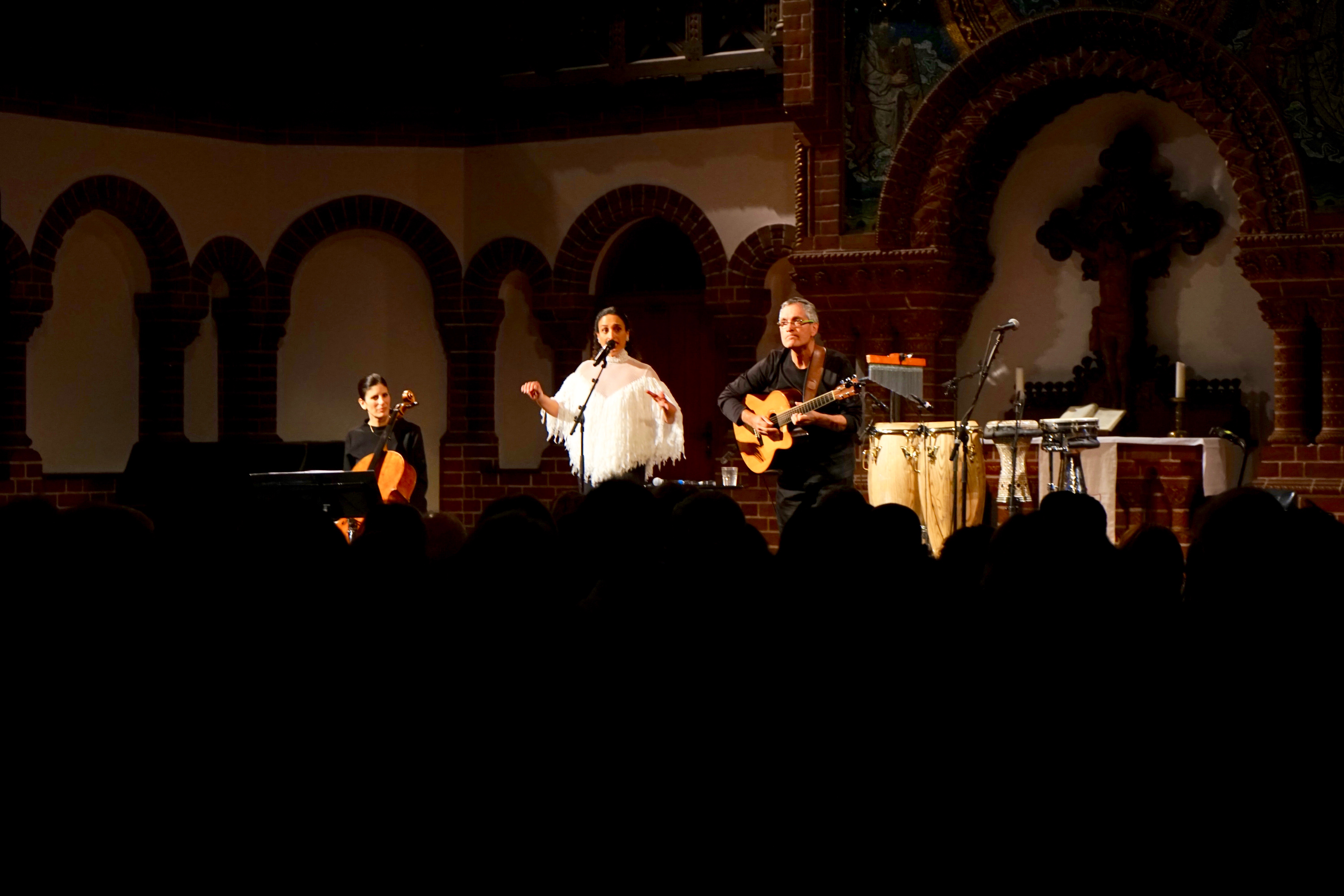 Im Laufe des Konzerts zeigte die Musikerin neben ihrem herausragenden Gesang auch ihre Fähigkeiten als Percussionistin unter anderem an den Congas. Das Publikum in der vollen Passionskirche jedenfalls schien ausnahmslos begeistert von dieser Mischung aus klassischer Musik, hebräischen, yemenitischen und englischen Texten, Rhythmik, orientalischen Skalen und nicht zuletzt ausgesprochen sympathischen Musikerinnen und Musikern.