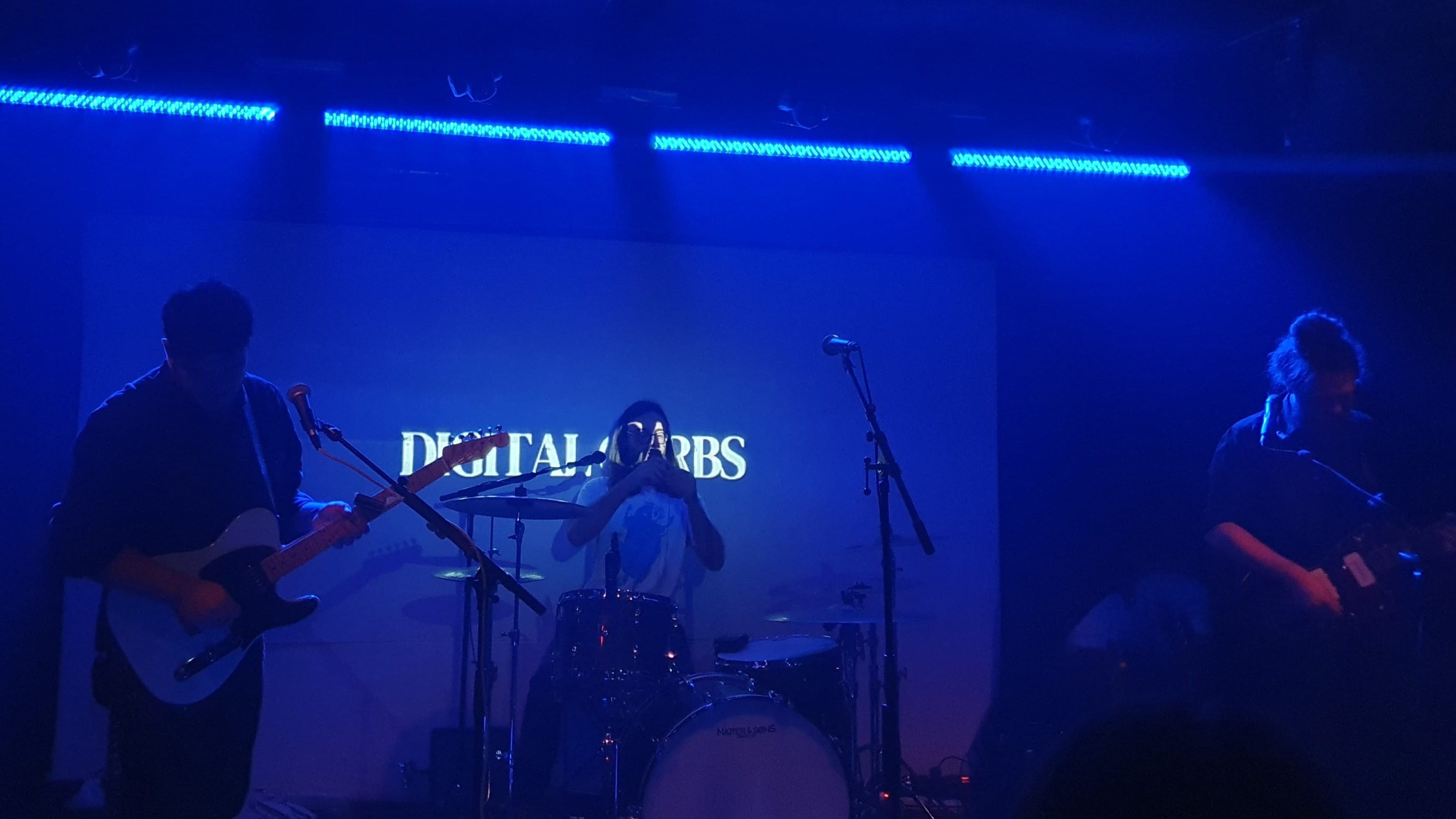 Nach kurzen Umbauarbeiten startete der Hauptact. Ähnlich schnell und stimmungsvoll wie ihre Vorgänger ging es hier weiter. Die Digital Carbs beschreiben ihre Musik selbst als „depressiven Rock mit Indie- und Psychadelic-Elementen“ und ja, mit dieser Beschreibung gehe ich mit! Songs wie „In Limbo“ und „Maniac“ waren als Starter gute Aushängeschilder dafür, was einen im Laufe des Abends noch erwarten würde. Rock, der nicht nur laut ist, sondern der vor allem auch durch die einprägsame Stimme von Sänger Johannes unter die Haut geht und Emotionen vermittelt. Das Publikum war voll dabei: Bei Gitarrenriffs wurde geheadbangt (An dieser Stelle: Liebe Grüße an die Frau vor mir! Hab die Motivation geliebt) und bei den sanften Indie-Parts ließ sich der Raum auch mal in angenehmer Ruhe treiben.