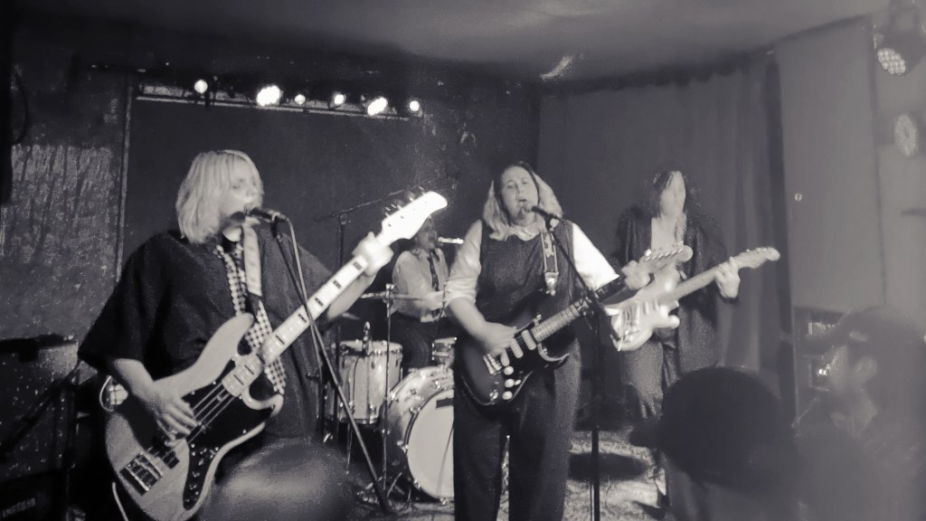 Die vierköpfige Band aus Bristol fühlt sich sichtlich wohl in der niedrigschwelligen Atmosphäre des Schokoladens. Dann geht’s los und der Gig knüpft direkt an die Energie an, mit der die kräftigen Doppelvocals und Powerchords der Vorband Lobsterbomb zuvor eingeheizt hat.